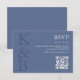 Cartão RSVP Modern Blue Monogram Minimalist Wedding