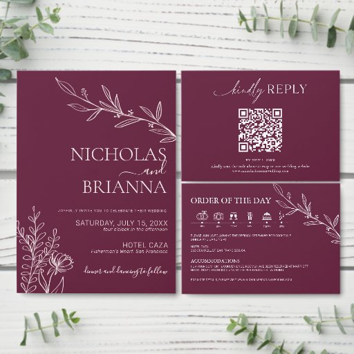 Cartão RSVP Modern Burgundy Boho Wedding Simple Elegant