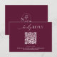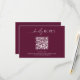 Modern Minimal Burgundy Boho Wedding QR Code RSVP Card. Monogram at the back.