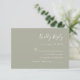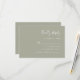 Este simples e moderno cartão de apresentação RSVP de casamento apresenta texto branco em um fundo verde de sábio. O título aparece na caligrafia na moda. Personalize o texto restante na fonte sans serif. O verso é verde de sábio sólido.