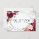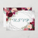 Cartão RSVP Moderno Borgonha Floral Silver Confetti