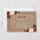 Cartão RSVP Moderno Elegante Burgundy Floral Wedding Kraft