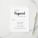 Moderno e Trendy Responde ou cartões RSVP para casamento ou qualquer ocasião em uma cor neutra de preto e branco clássico. Placas de modelo editáveis - fonte, texto, cor, tamanho. Personalize-os como quiser!