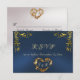 Cartão RSVP Moldura Ornamentada & Coração - Azul/Dourado