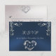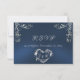Cartão RSVP Moldura Ornamentada & Coração - Azul/Prata