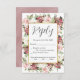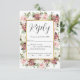 Envie aos hóspedes uma bela solicitação de RSVP com esta placa de cor d'água apresentando flores cor-de-rosa e verdes em um quadro dourado. Uma adição elegante à sua suíte de papelaria de casamento.