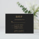 Cartão RSVP Monograma de Casamento Negro Minimalista Dourado