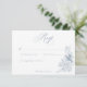 Elevem sua celebração de casamento com nossa elegante carta de resposta de casamento de chinoiserie sem escolhas jantes, uma combinação perfeita de elegância eterno e charme rústico. Apresentando um delicado design inspirado na natureza, esta design apresenta folhagem intrincada, galhos graciosos e charmosos de pássaros em uma paleta azul macia e empoeirada. O estilo da chinoiserie acrescenta uma sensação sofisticada e vintagal, enquanto os elementos orgânicos criam um ambiente quente e romântico ideal para casamentos de jardim, cerimônias ao ar livre ou espaços rurais. Ela dá o tom para uma celebração refinada, mas relaxada. Perfeito para casais à procura de designs de casamento azuis empoeirados, convites de casamento de chinoiserie, papelaria de casamento inspirada na natureza ou designs de casamento rústicos elegantes. Criado pela imprensa simplesmente de farmácia.