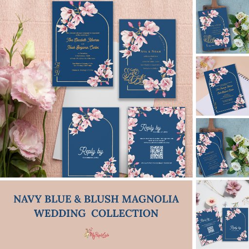 Navy Blue & Blush Magnolia Elegant WeddingCriado por Mypaperlove Designs