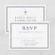 Navy Blue Religious Cross Boy First Communion RSVP Card.