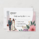 Esta elegante placa de RSVP de casamento floral de aquarela é perfeita para um casamento moderno. A design romântica apresenta uma elegante estrutura floral de aquarela com uma ilustração noiva e noiva e caligrafia preta sobre fundo branco.