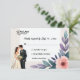 Esta elegante placa de RSVP de casamento floral de aquarela é perfeita para um casamento moderno. A design romântica apresenta uma elegante estrutura floral de aquarela com uma ilustração noiva e noiva e caligrafia preta sobre fundo branco.