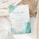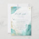 Este cartão moderno de RSVP para casamento na praia com opções de menu apresenta fontes modernas e tendências com caligrafia estilosa, emoldurado por respingos de tinta álcool turquesa e dourado.