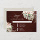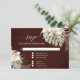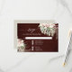 Cartão de resposta RSVP de Orquídea Branca Mal-humorada Floral Tropical Borgonha para combinar com nosso conjunto completo de convite de casamento. O fundo de madeira rústica manchada de azul-marinho escuro é ao mesmo tempo elegante e sombrio quando combinado com imagens de aquarela pintadas à mão em um estilo Boho floral com folhagem seca da selva e folhas de palmeira para um casamento com tema de praia, tropical ou à beira-mar. Direitos autorais, Artista internacionalmente conhecida e licenciada, Audrey Jeanne Roberts.