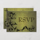Envie aos convidados de casamento esta animadora design de cartão RSVP com um fundo de mocha com cipós enfeitados com dois pombinhos em verde-oliva. O texto personalizável permite alterar fontes, alterar cores e tamanhos de texto conforme desejar. Matando papelaria de casamento disponível com esta design também.