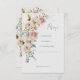 Este simples, mas elegante design do cartão de resposta do casamento apresenta um buquê de flores cor-de-rosa, amarelas e lavandas com verde sobre um fundo de papel branco texturizado. É parte do Pastel Floral Modern Wedding Suite criado pela Simply Farmhouse Press.
