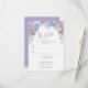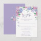 Esta Placa de RSVP de Casamento foi projetada com lindas Hídrangas em tons de lavanda, azul e rosa, em um fundo branco. O reverso é projetado com um Buquê Hydrangeas em um fundo lavanda. Para personalizar, basta inserir seus detalhes em nosso modelo fácil, substituindo o texto de exemplo.