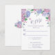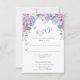 Placa RSVP de Casamento Floral do Pastel Hydrangeas projetada com flores Hydrangeas de verão em tons roxos, azuis e cor-de-rosa, sobre fundo branco. O reverso é desenhado com um Buquê Hydrangeas sobre fundo branco. Para personalizar, basta inserir seus detalhes em nosso modelo fácil, substituindo o texto de exemplo. Certifique-se de ver a Coleção de Casamentos de Pastel Hydrangeas completa para cartas e acessórios correspondentes.
