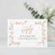 Cartão de resposta de cercado RSVP de casamento de pêssego elegante com folhas de folhagem de cor d'água delicadas em um tema de natureza botânica. Projetado com um roteiro de caligrafia refinado e a frase "Resposta gentil", este cartão oferece um toque moderno com um código QR incluído para enviar respostas fáceis para o casamento. Perfeito para complementar sua elegante suíte de papelaria de casamento, combina beleza de eterno com funcionalidade conveniente para seu dia especial.