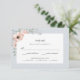 Este elegante cartão de resposta do casamento mostra flores cor d'água de pêssego em um fundo azul leve e empoeirado. Este cartão de resposta oferece três opções de refeição.