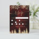 Hora de comemorar seu tema de casamento da terra maravilhosa do inverno com este luxo flocos de neve glitter glitter dourado faíscas e floresta amarela de pinheiro dourado em um elegante fundo de madeira vermelho-burgundy festivo, com um desenho moderno e legal tipografia de fontes. Cartão perfeito para o seu casamento no inverno.