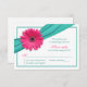Cartão RSVP Pink Gerbera Daisy Turquoise Casamento de Fita RSV