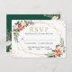 Cartão RSVP Poinsettia Marfim Floral Geométrico Moldura Dourad