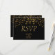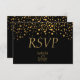 Cartão RSVP Pontos de Confetti Pretos e Dourados