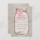Lindas confirmações de casamento rústicas country com ilustração de pote de pedra e um acento de gerbera rosa. O fundo de tecido rústico é um design impresso no papel - não tecido de burlap real. Por favor, entre em contato se precisar de ajuda com personalização ou tiver um pedido de cor personalizada.
