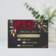 Belo cartão botânico ajustável, belas flores vermelhas escuras com folhas douradas contra fundo preto elegante