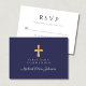 Cartão RSVP de Primeira Comunhão do marinho Azul Religioso Cross Boy