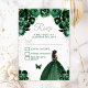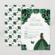 Este elegante e glamouroso cartão rsvp apresenta uma bela princesa com pele escura num vestido de bola verde-escura. O texto combina o script manuscrito e as fontes sans serif modernas para um aspecto elegante e sofisticado. Os arranjos florais, borboleta e confete prateado criam a mistura perfeita de rústico e chic. Perfeito para uma doce festa ou festa de aniversário de dezesseis. Gráficos por www.etsy.com/uk/shop/SunflowerDayLove