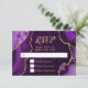 Make a bold and elegant first impression with this purple and gold agate marble RSVP card, featuring rich jewel tones, organic stone textures, and shimmering gold accents perfect for fall and winter celebrations. The deep amethyst hues paired with metallic gold detailing create a dramatic yet refined look ideal for a wedding RSVP, birthday RSVP, or Sweet Sixteen RSVP with a formal, modern, or glamorous aesthetic. Inspired by natural agate and geode patterns, this luxurious design coordinates beautifully with upscale seasonal events and is fully customizable to match your details, adding timeless sophistication to autumn and winter celebrations alike.