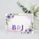 Cartão RSVP Purple White Floral Gold Frame Wedding Reply By