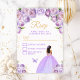 Esta elegante e glamourosa placa rsvp apresenta uma bela princesa com pele escura em um vestido de bola roxo claro. O texto combina o script manuscrito e as fontes sans serif modernas para um aspecto elegante e sofisticado. Os arranjos florais, borboletas e confete de ouro criam a mistura perfeita de rústicos e quicos. Perfeito para uma doce festa ou festa de aniversário de dezesseis. Gráficos por www.etsy.com/uk/shop/SunflowerDayLove