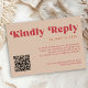 Cartão RSVP QR code Retro groovy bold red beige online wedding