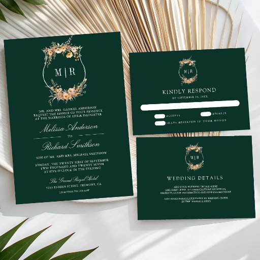 Fall Wildflower Crest Emerald Green Wedding Criado por Shabbir D