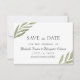 Cartão de salvar a data com ramo elegante de verde. Este cartão tem uma aparência moderna minimalista, decorada com folhas simples elegantes em aquarela de cor menta. Uma ótima escolha para casamentos de verão. Parte de uma coleção de casamento. Verifique minha loja para ver o conjunto completo de casamento para este design!