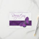 Um cartão de recepção para confirmar as escolhas de refeição, incluindo opções amigáveis para diabéticos, é personalizável. O design faz parte da Coleção Brocado de Borboletas para Casamentos em roxo. Haverá outras quatro opções de cores disponíveis, pavão, granada, cobre e um lindo verde- samambaia. O fundo é um intricado desenho de brocado, não em relevo, será impresso plano. As borboletas têm a aparência de vitral e da mesma forma não são em relevo. Tanto a cor quanto a seção branca para texto estão no padrão de brocado. Também estarão disponíveis itens como selos, números de mesa, cartões de lugar, cartões de agradecimento, RSVP, convites de casamento, cartões de "salve a data" e outros produtos correspondentes.