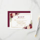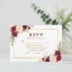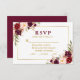 A moderna placa RSVP Floral e Dourada de Casamento Elegante Burgundy com Opções de Refeições inclui rosas burguentos, rosas cor-de-rosa e verde botânico.