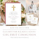 Religious Cross Pink GIrl First Communion RSVP Card.