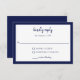 "gentilmente Responda" em belas letras de mão e letra de script Cartão de gabinete RSVP de Casamento. Perfeito para casamentos elegantes clássicos de cor azul. Cartão de resposta de casamento simples e clássico.
