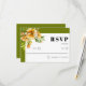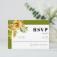 Rhododendron branch and orange yellow flowers fall wedding RSVP Card. This inspired by nature design showcases a slender rhododendron branch with gentle orange, yellow blossoms. Positioned in the upper‑left corner, the floral illustration adds a soft, romantic touch that instantly draws the eye. The text rests inside a clean white panel framed by delicate olive green edging, lending an understated elegance. The “RSVP” appears in bold, contemporary lettering, marrying modern flair with classic poise. An olive green background ties the whole composition together, creating a balanced palette that sets the perfect tone for your celebration.