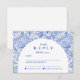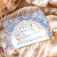 An elegant graduation celebration design featuring a delicate blue toile floral border inspired by classic European porcelain and vintage botanical prints. The intricate florals frame a clean arched center panel, creating a refined and timeless composition that highlights the graduate’s name and event details beautifully. Soft blue tones against a crisp ivory background give the design a sophisticated yet celebratory feel. Perfect for a stylish graduation gathering with a classic, romantic aesthetic.
