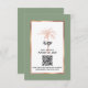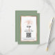 Forneça aos seus convidados para responder ao seu convite para o casamento e explore seu site de casamento com os detalhes elegantes de RSVP e design de código QR com script moderno e texto preto, incluindo uma palmeira artística e um quadro metálico de cobre-ouro-rosa na frente do cartão. Um fundo verde sábio está na frente e atrás.