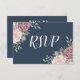 Cartão RSVP Rosa Empoeirado Naval Aguarela Floral
