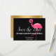 CARTÃO RSVP ROSA FLAMINGO DOURADO SALVE A DATA PRETA