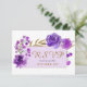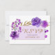 Cartão de RSVP Quinceanera - ou mesmo qualquer outra ocasião especial. Design floral elegante com flores de rosa de de aquarela e folhas em tons de roxo e ouro. Design moderno para sua próxima comemoração de 15. Por favor, navegue na minha Coleção de Folhas de Rosa Puro e Dourada para obter produtos correspondentes ou envie-me uma mensagem para criar os modelos de que necessita.