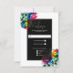 Cartão RSVP Rosas Arco-íris Casamento Floral Preto e Branco RS