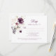 Elegantes flores em aquarela roxo escuro sobre contornos florais esboçados em dourado com flores brancas adicionadas, e folhas roxas e verdes RSVP. A parte de trás do cartão é branca com uma única peônia roxa. Há um convite correspondente disponível.